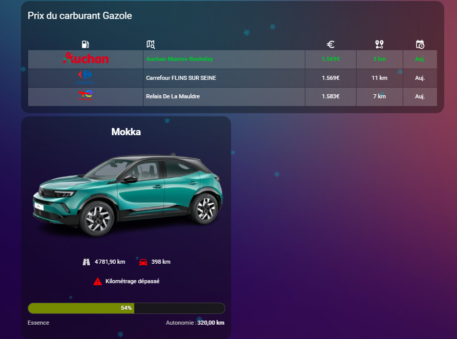 Comme il s’agit d’un véhicule en LLD, je surveille également le respect du kilométrage de mon contrat. Le dashboard me permet de voir rapidement si je suis dans les clous ou non.